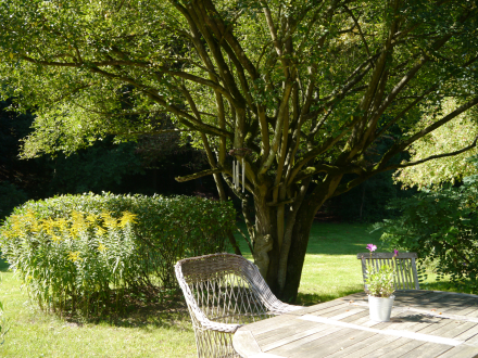 - im Obergeschoss eine helle, gut geschnittene und rundum ins Grüne blickende 3-Zimmerwohnung auf