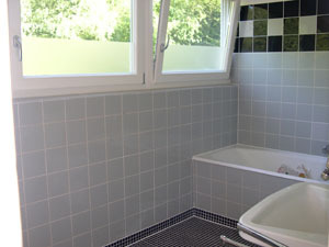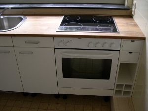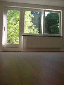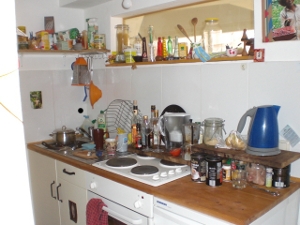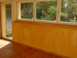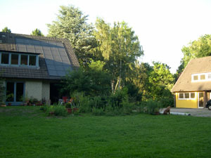 Im Vorderhaus (rechts im Bild, gelb) befinden sich zwei Wohnungen, die vermietet werden sowie zwei ehemalige Garagen, von denen eine als gemeinsame Fahrradgarage und Heizungsraum genutzt wird. Die zweite könnte später bspw. zum gemeinsamen Werkatelier o. ä. umgewandelt werden. Die Wohnung im linken (Hinter-)Haus ist ebenfalls bewohnt .